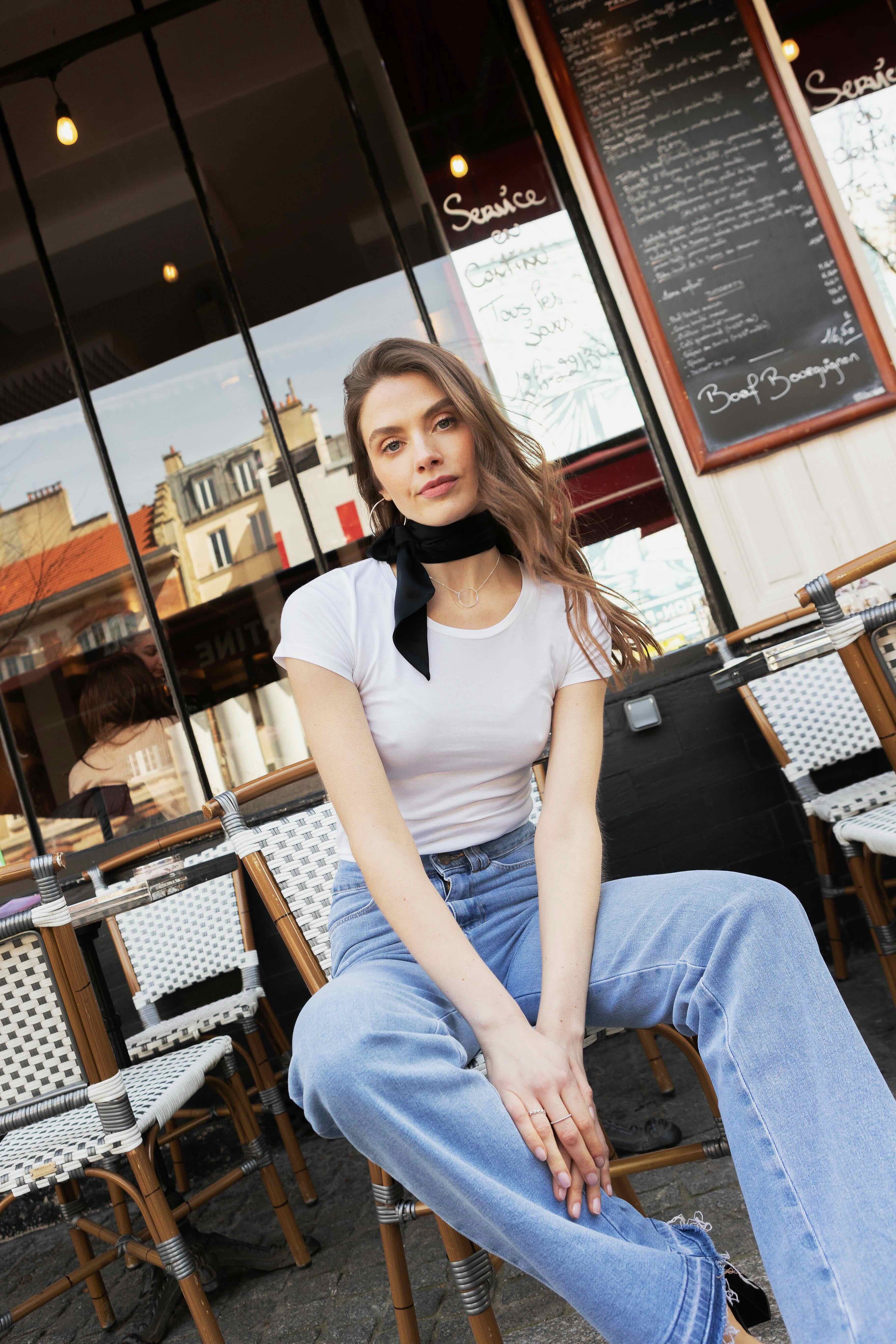 Juliet is 1,76m tall and wears size FR 0.